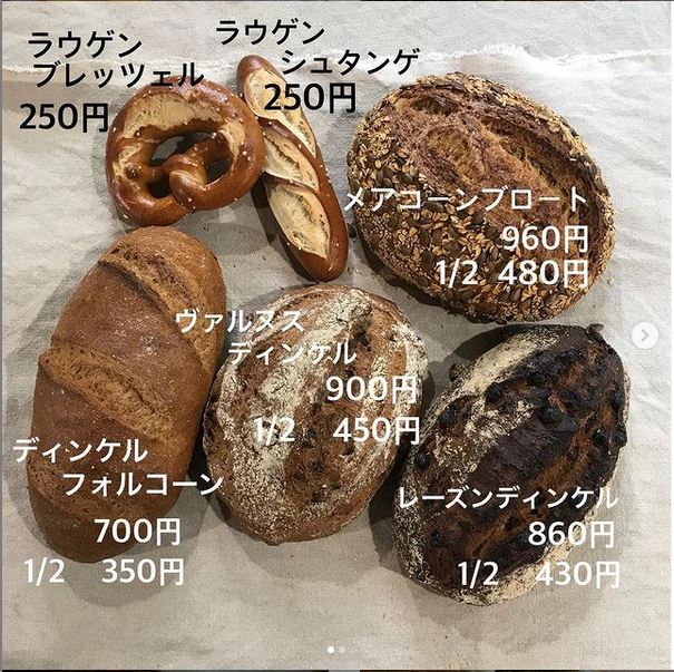 Seither gibt es dort klassische deutsches Brot-Programm: Weizenvollkornbrot, Dinkelvollkornbrot (die sind noch ganz selten in Japan), Weizenmischbrot, Roggenbrot, Brezel, Semmel und Vollkornbrötchen mit verschiedenen Körnern. Als Süßwaren ein paar Sorten Blechkuchen (Streuselkuchen, Apfelkuchen… Eierschecke möchte ich backen!), Stollen, Elisenlebkuchen, Zimtsterne in Weihnachtszeit.
