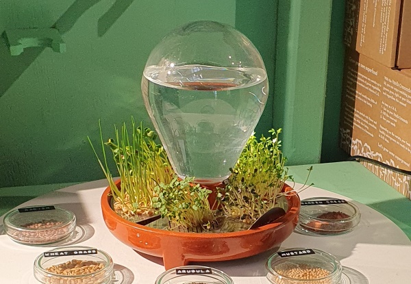 Eins meiner Highlights auf den Passagen 2025 waren die Produkte von House of Thol. Die niederländischen Designer*innen beschäftigen sich mit zukunftsfähigem Design. Zum Beispiel das sehr hübsche Bewässerungssystem für Zimmerpflanzen aus Glas und Ton, die hübsch gestaltete Messingscheibe Helios als Wachstumshilfe für für die Anzucht von Stecklingen, Zwiebeln und Kernen, oder das kleine Set Patella Crescenda , mit dem man Sprossen ziehen kann und das so hübsch ist, dass man es mit auf den gedeckten Tisch stellen kann, um seiner Mahlzeit ein frisches Topping hinzuzufügen.